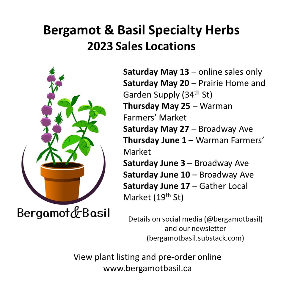 We’re two prairie women who are passionate about growing herbs. We’re looking to fill a gap in the Saskatoon plant landscape by supplying the most interesting variety of herbs around! Learn more about us.